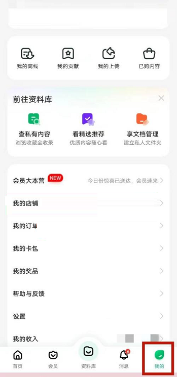 第一步:进入【百度文库】APP首页,点击右下角【我的】,详见下图所示;