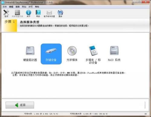 第一步:选择存储设备。然后选择需要扫描的卷标可移动硬盘一般显示为可移动磁盘i盘,具体出根据电脑情况而定。