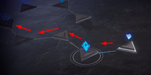 2、之后我们会被传送到一个新的区域中,然后继续按照下图的箭头指引移动。