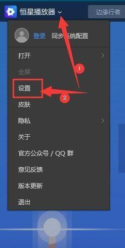 第二步:登录进入“恒星播放器”主界面后, 点击左上角“设置”按钮,在列出的选项中选择“设置”进入,如图所示。
