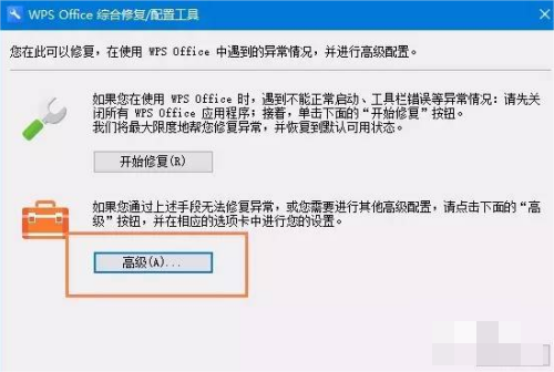 打开ksomisc.exe程序,单击【高级】按钮。
