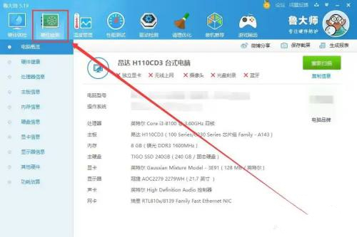 第一步:在鲁大师中,点击【硬件信息】,进入该界面中。