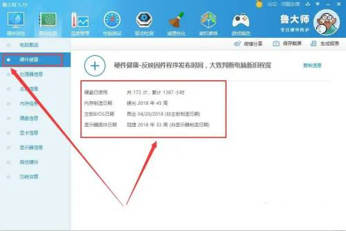 第二步:点击【硬件健康】就能够看到大致的使用时间了。