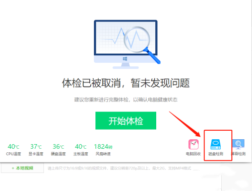 第一步:点击右下方“硬盘检测”按钮。