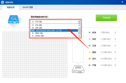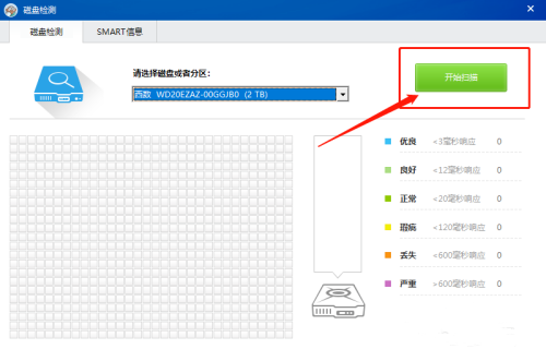 第三步:点击右上方的“开始扫描”按钮即可对硬盘进行检测啦。