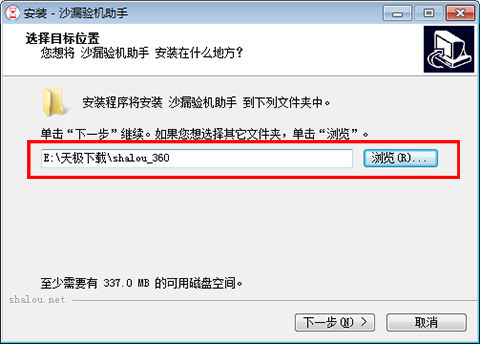 1.从本站下载沙漏验机助手软件包,解压后进入安装向导,点击【浏览】自定义安装文件位置,单击【下一步】继续。