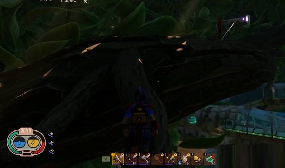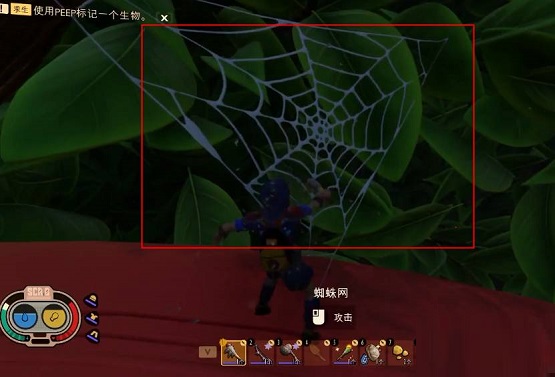 1、玩家进入游戏后,在经过浆果树丛那有别针上去,沿着树干往前,经过两个滑索,在这期间我们可以攻击碰到达很多蜘蛛网跟蜘蛛。
