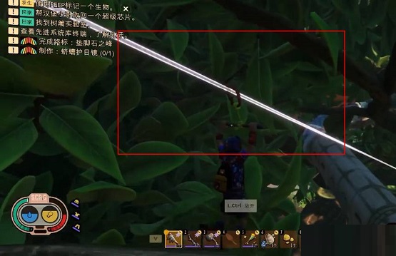 2、然后我们到了一个绳索的位置,通过绳索滑下去,这样就能可以到达树篱实验室了。