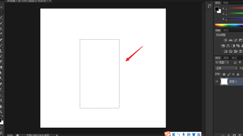 第一步:打开Photoshop CS6,使用矩形选择工具在画布上创建矩形选区。