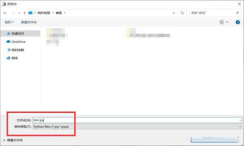 第四步:选择保存的路径,设置名称,文件类型设为python文件,点击【保存】。