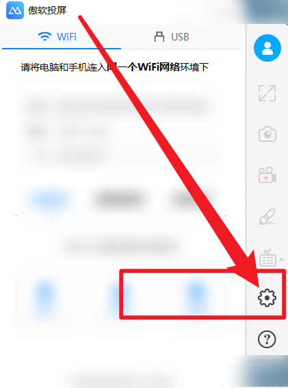 第一步:打开傲软投屏软件,在首页右侧点击进入设置。