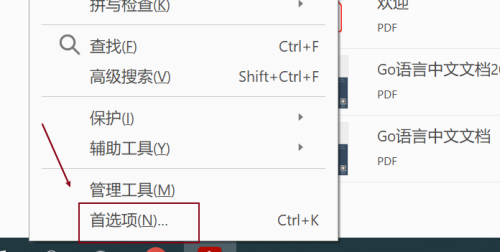 第二步:在打开的编辑菜单中,点击首选项,如图: