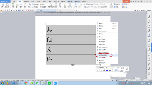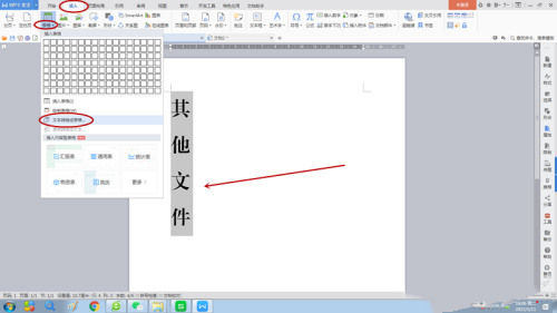 全选竖排文字,点击工具栏“插入”选项卡中的“表格”下拉菜单按钮,在弹出的菜单中选择“文本转换成表格”。