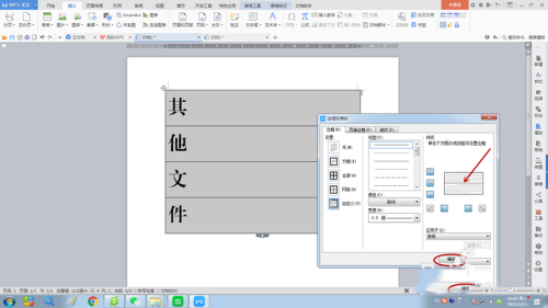 弹出对话框后,用鼠标点击下图1中红色箭头所指的中线边框,当中线消失的时候点击确定按钮关闭对话框,这时表格中线全部消失了,只剩下一个大边框。