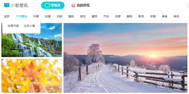 小智壁纸提供海量的壁纸资源,按照风景、动漫、动物、游戏、建筑、汽车、创意、静物、影视、体育、美食、以及其它进行分类,方便用户根据自己的喜好查找喜欢的壁纸。