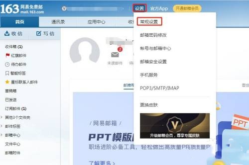 3.点击邮箱上方的设置-常规设置
