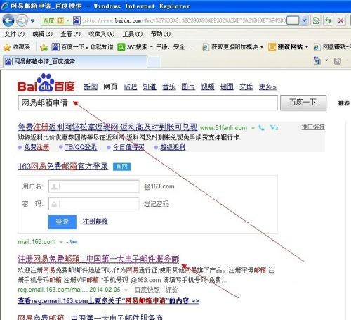 1.打开百度,输入网易邮箱申请,如图