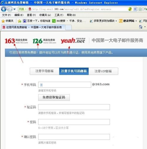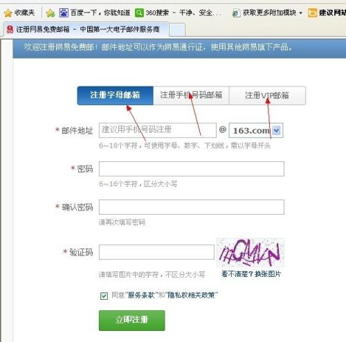 3.邮箱号又分为字母邮箱,手机号码邮箱,和VIP邮箱,其中VIP邮箱是收费的哦。如果注册手机号码邮箱需要手机验证的,一般我们只申请字母邮箱,如图