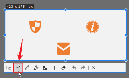 第二步:选择截图区域,然后点击工具栏中的“折线”。