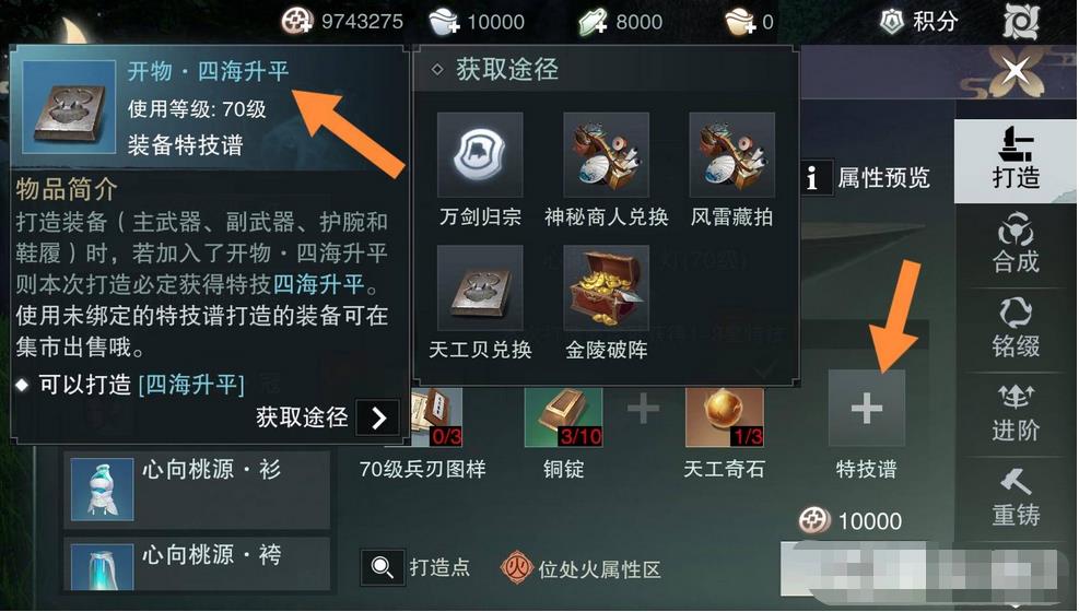 5.如果玩家想要获得指定特技,可以添加特技谱进行打造,特技谱的获取途径如下。