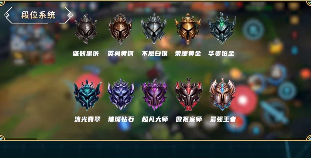 1、手游里面是分成11个段位,按级别从低到高分别为黑铁,青铜,白银,黄金,白金,珀金,翡翠(新加的),钻石,大师,王者,而且每个段位里都是有分4个小段位。