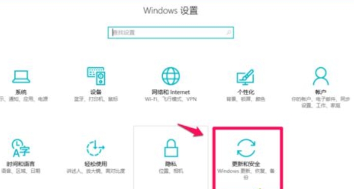第一步:W10企业版的话,依次单击“开始”-“设置”-“更新和安全”