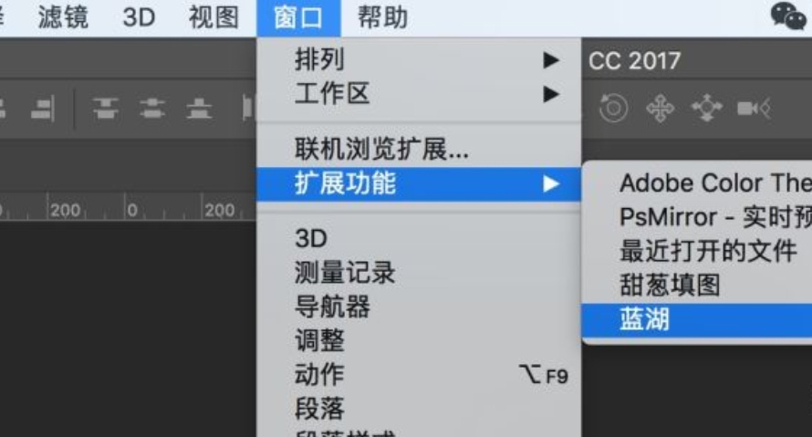 下载插件后进行安装。安装成功后,打开路径为:窗口-扩展功能-蓝湖(PS的插件基本都是在这个路径打开的)