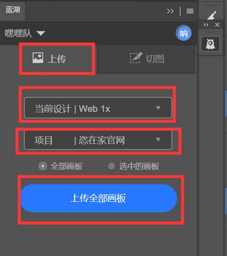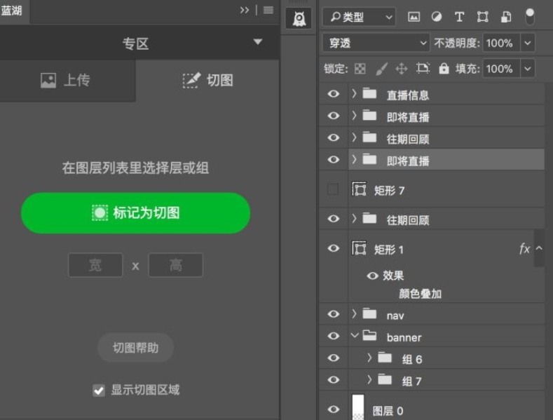然后从上传切换到切图:选中要切图的图层或组,再点击标记为切图。