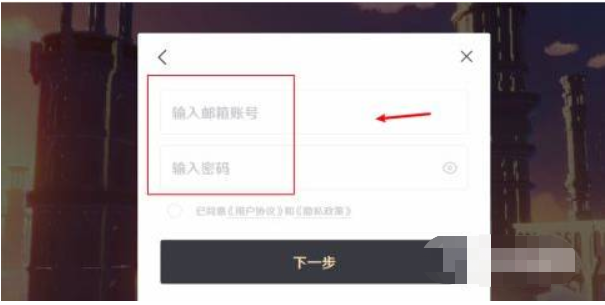 3.最后输入邮箱账户以及游戏密码,再点击下一步就可以即可。
