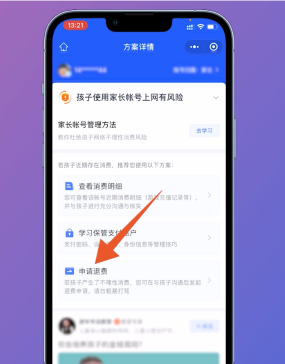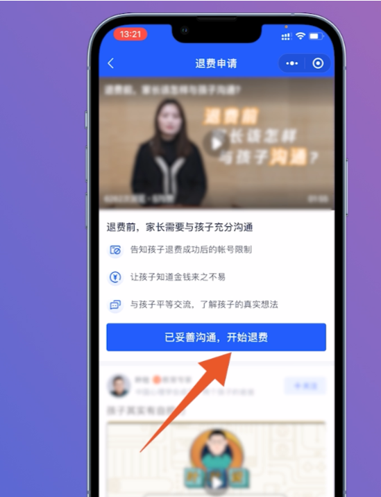 在新的页面中,通过点击申请退费,跳转到退费申请的页面。