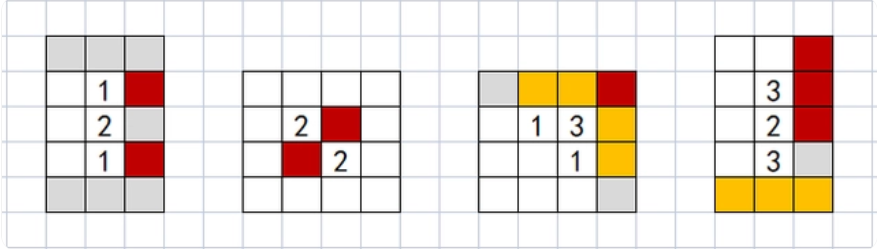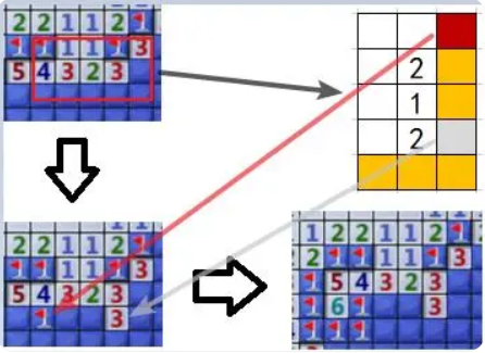 我们可以通过了解一些常见的“阵型”来快速判断哪些地方有炸弹,哪些地方是安全的。