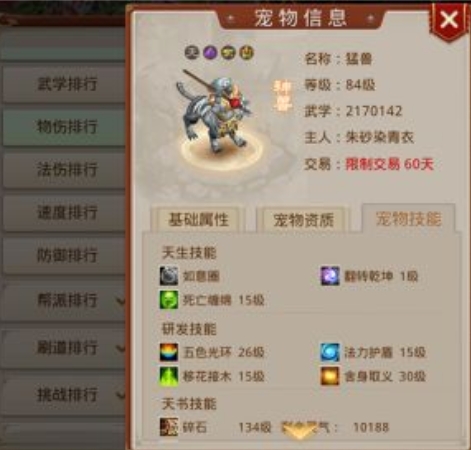 玩家可以从集市中购买其他玩家出售的天技宠物