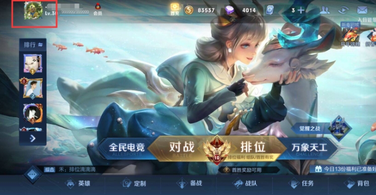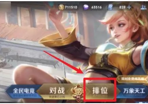 玩家进入游戏主页后,在主页中找到排位点击并进入。