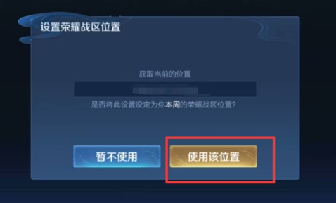 完成以上操作后,将会出现弹窗提示,提示内容为显示你当前所在的位置,并询问玩家是否确认要更新地区,点击黄色按钮,即可完成更新战区。