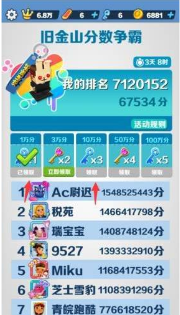 4、最后还可以参加争霸赛,达到要求分数后会获得钥匙奖励。