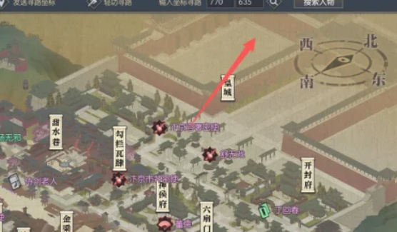 打开游戏地图,在下图位置输入坐标寻路。