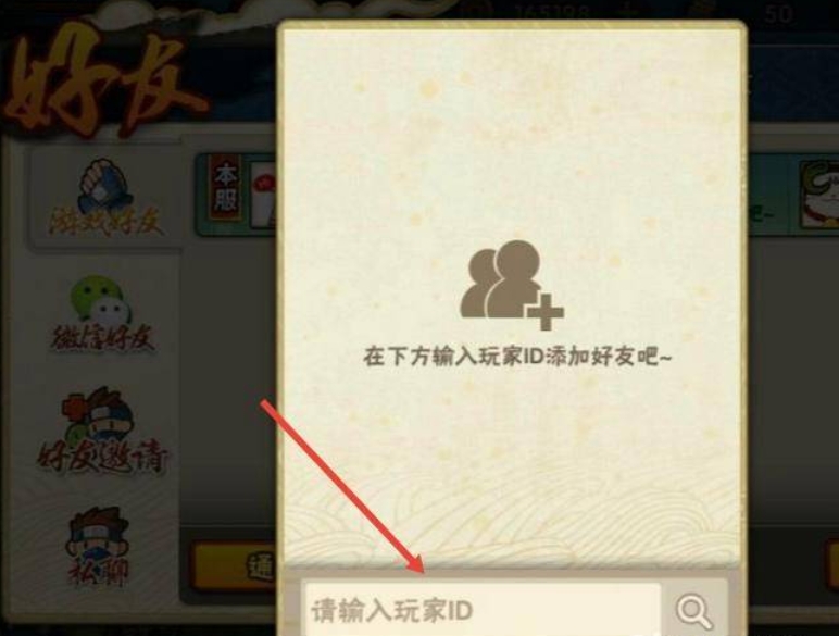 3、输入玩家的ID即可添加好友;