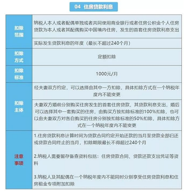 4、住房贷款利息专项扣除,商业银行或公积金贷款,每月1000元标准扣除;
