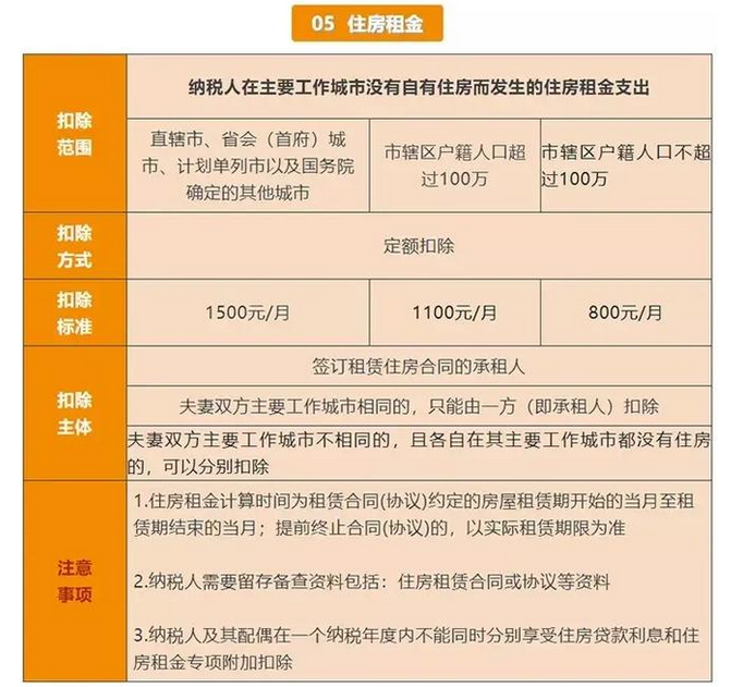 5、特别扣除住房租金,纳税人在工作城市没有住房的,也需要扣除;