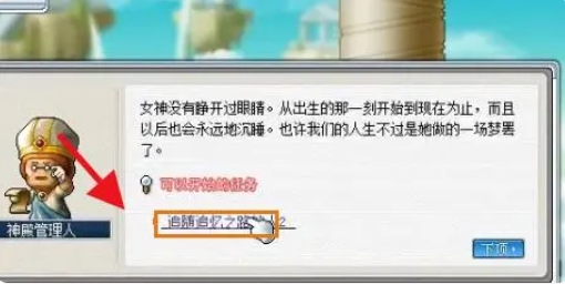 1、点击“接受”按钮,正式接受“追随追忆之路”任务。