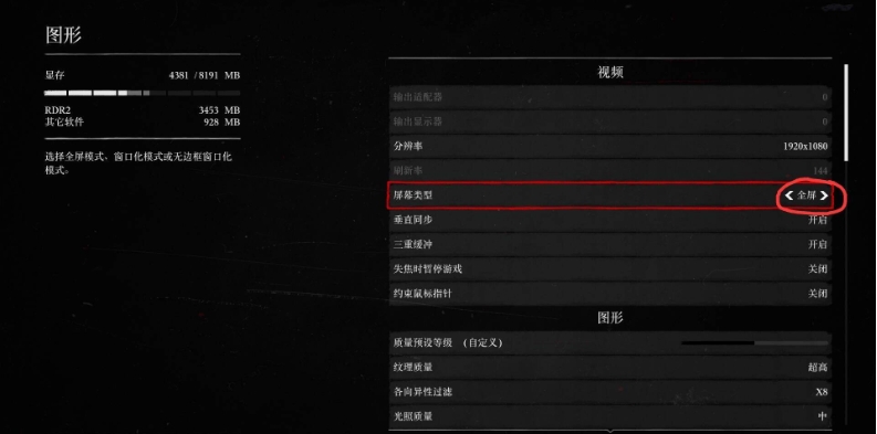 荒野大镖客怎么全屏?