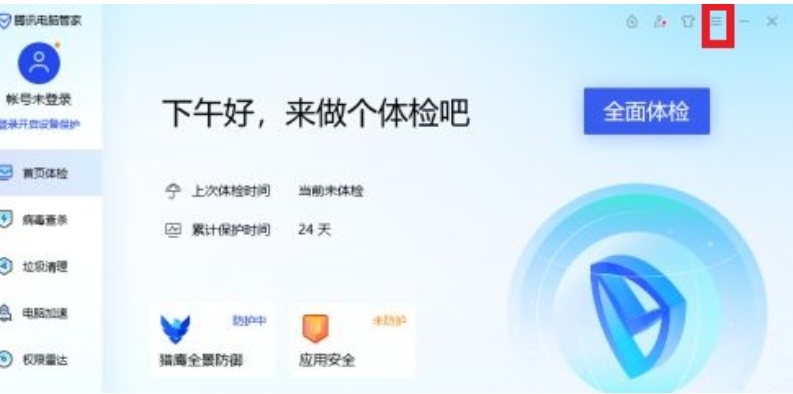 用户首先需要打开已经安装在电脑上的腾讯电脑管家软件。在软件界面的右上角,通常会有一些操作按钮或菜单,其中一个标识为三横杠的图标,用户需要点击这个图标。