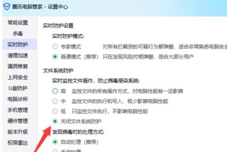 成功关闭了腾讯电脑管家的文件实时防护功能后。这意味着软件将暂时不再对文件系统进行实时安全监测,从而避免了因误报病毒而错误删除文件的情况。