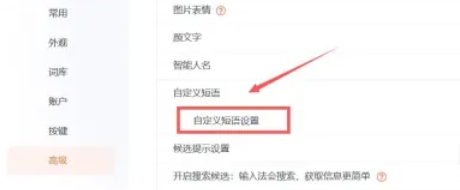 在高级设置页面中,继续浏览并寻找“自定义短语”或“自定义短语设置”的选项。点击它,进入自定义短语的设置页面。