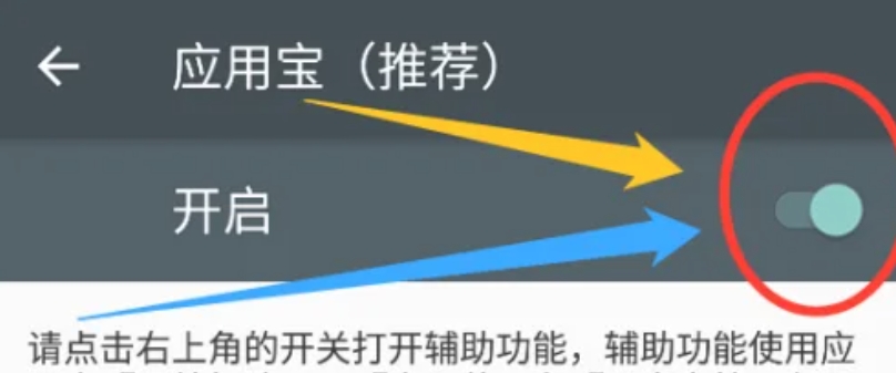 5、最后,在“应用宝(推荐)”的设置页面中,找到并点击“开启”按钮。这将允许应用宝在某些情况下自动安装推荐的应用。