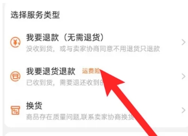 在弹出的选项中,选择“我要退货退款”。