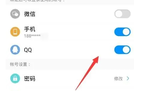 在帐号和绑定设置页面,点击“切换微信或者QQ帐号”选项。