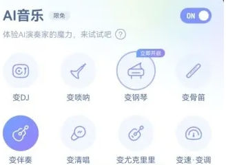 点击AI音乐按钮后,会弹出一个新的页面。在这个页面上,你可以看到各种与AI音乐相关的功能选项。找到并点击“变伴奏”按钮,这个按钮通常用于切换歌曲的伴奏版本。