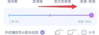 点击“变伴奏”按钮后,会弹出一个伴奏设置页面。在这个页面上,你可以看到一个控制滚动条,用于调节伴奏的声音大小。