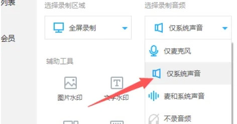在出现的选项中,选择“仅系统声音”或者选择“不录音频”。选择“仅系统声音”将只录制系统内部的声音,而不会录制外界声音(如麦克风输入)。选择“不录音频”则完全不会录制任何声音。